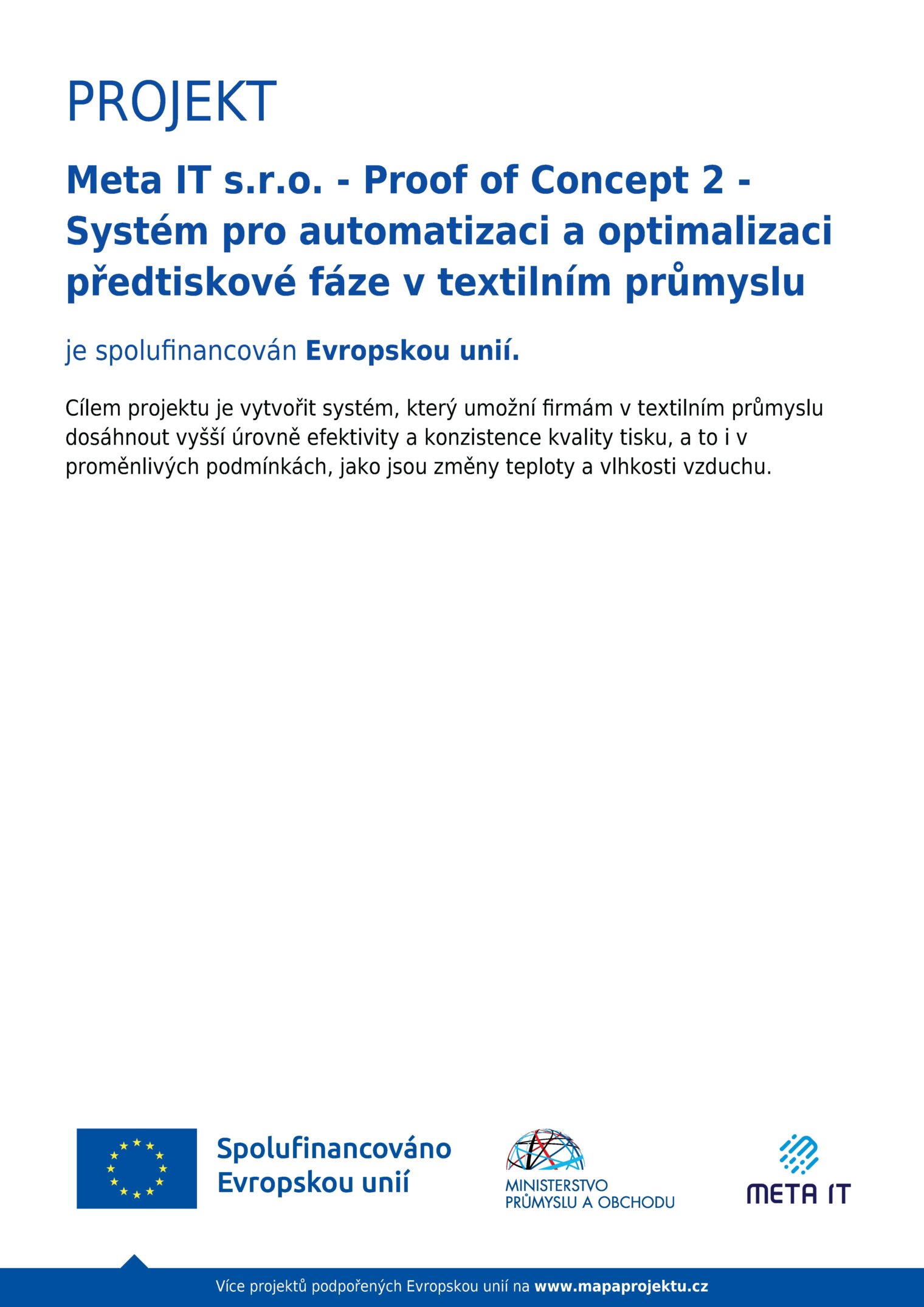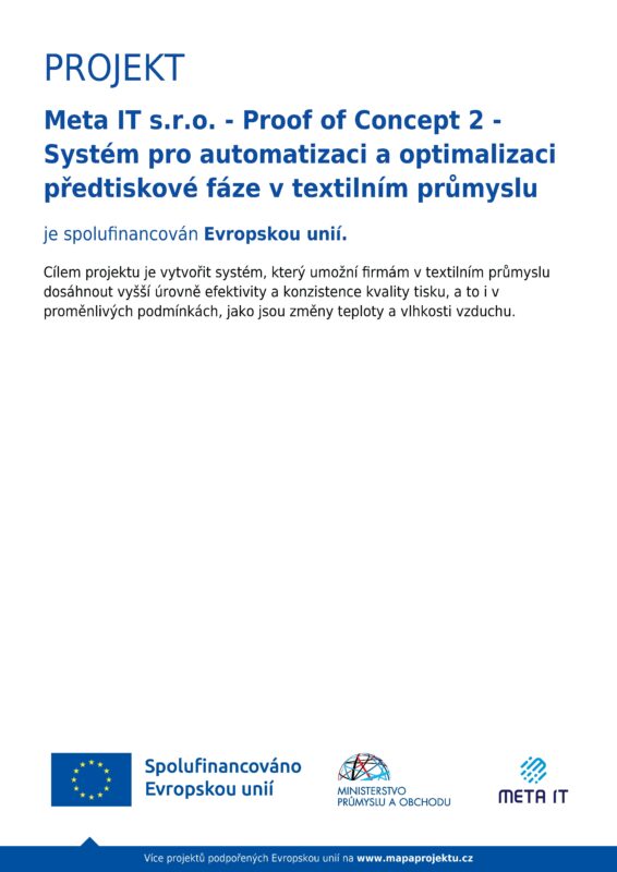 Cílem projektu je vytvořit a dodat na trh komplexní řešení pro automatizaci předvýrobní fáze zakázkové textilní produkce za použití umělé inteligence. Na projekt je poskytována finanční podpora EU.
